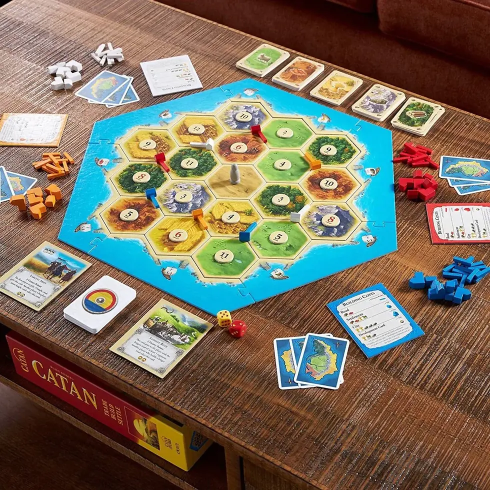 This can be understood through the board game Catan, which was invented by Klaus Teuber (Pushya Moon). It involves strategic exchange of resources and territorial expansion, which can be associated with themes of the 4th house of Cancer. Players compete against each other, but early progress depends on exchanging resources and forming temporary cooperation. As the game advances, this cooperation gradually shifts into direct competition for advantage.